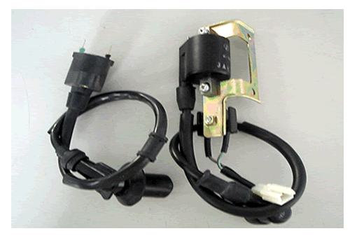 An ignition coil is essentially an induction coil that converts current from a battery into the high-voltage current required by spark plugs.